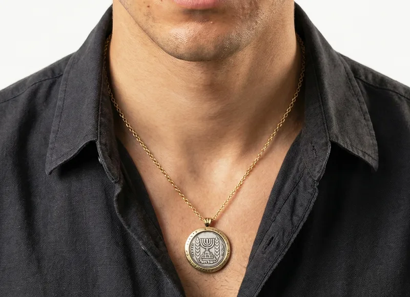 תליון מנורה מעוצב בעבודת יד ממטבע ישן של חצי לירה ואילו מסגרת התליון עשויה ממטבע אנגלי. קוטר התליון 3 ס"מ עם שרשרת גולדפילד איכותית. מירן שביט תכשיטים ממטבעות נייד-ווצאפ 0544993792. המשלוח בדואר רשום חינם.