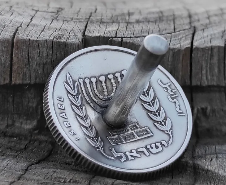 סביבונים מיוחדים עשויים בעבודת יד ממטבעות ישראל ישנים ועליהם סמל המנורה, שני ענפי זית והמילה ישראל. קוטר הסביבון 2 ס"מ והוא מאוזן ומסתובב זמן רב להנאתם של הילדים והמבוגרים. מירן שביט - תכשיטים ממטבעות. המשלוח בדואר רשום חינם. משלוח מהיר עם שליח לבית - 35 שח