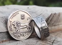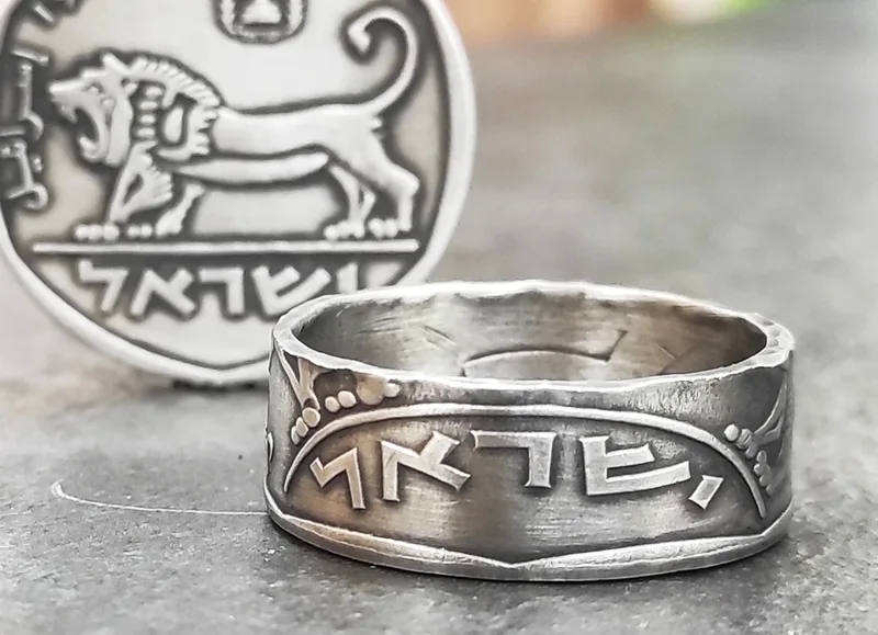 טבעת אריה מעוצבת בעבודת יד ממטבע של 5 לירות ישנות משנות ה 70 בצבע כסף או בצבע כסף מושחר, לבחירתכם. מירן שביט נייד-ווצאפ 0544993792. המשלוח בדואר רשום חינם. משלוח מהיר עם שליח לבית - 35 שח
