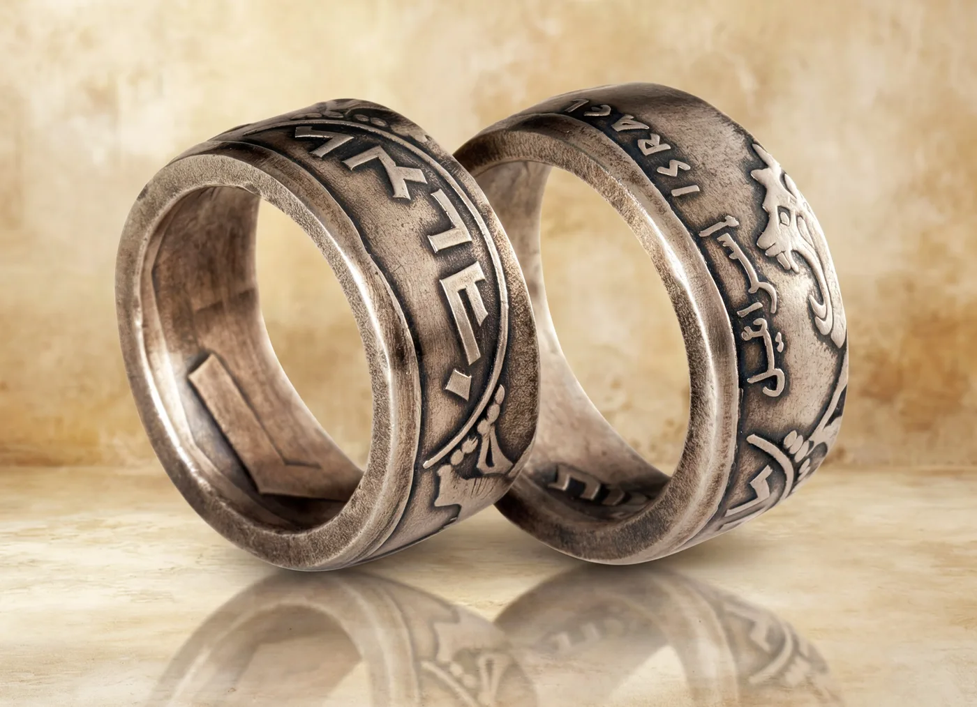 טבעת ממטבע 5 לירות, אריה יהודה, שנות ה 70 עשויה מהמטבע עצמו!