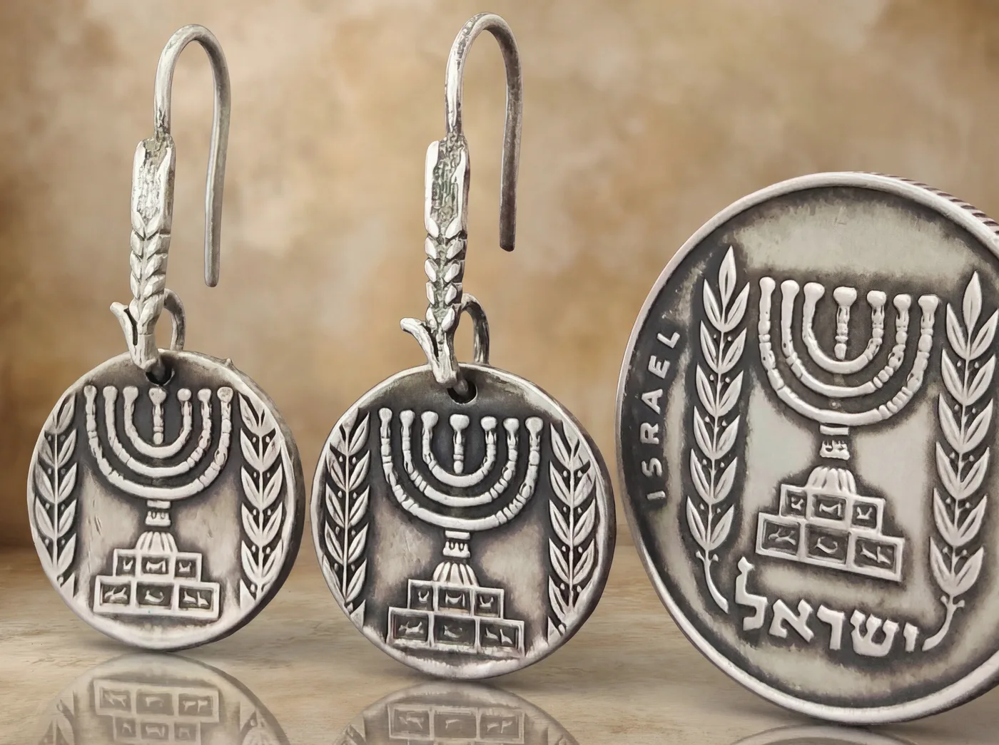 עגילים ממטבע מנורה - שנות ה 60