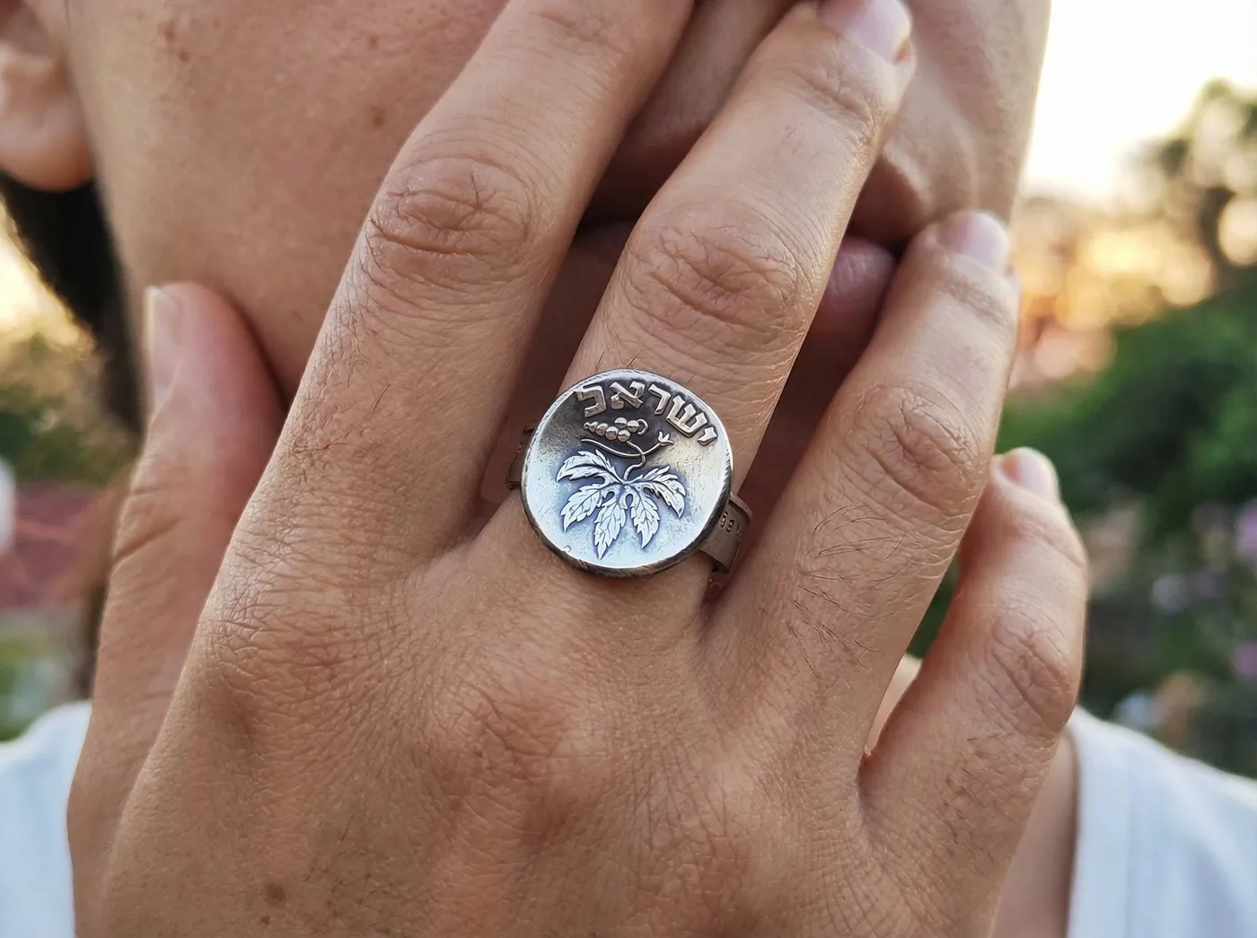 טבעת בעבודת יד, עשויה משני מטבעות ישראליים: