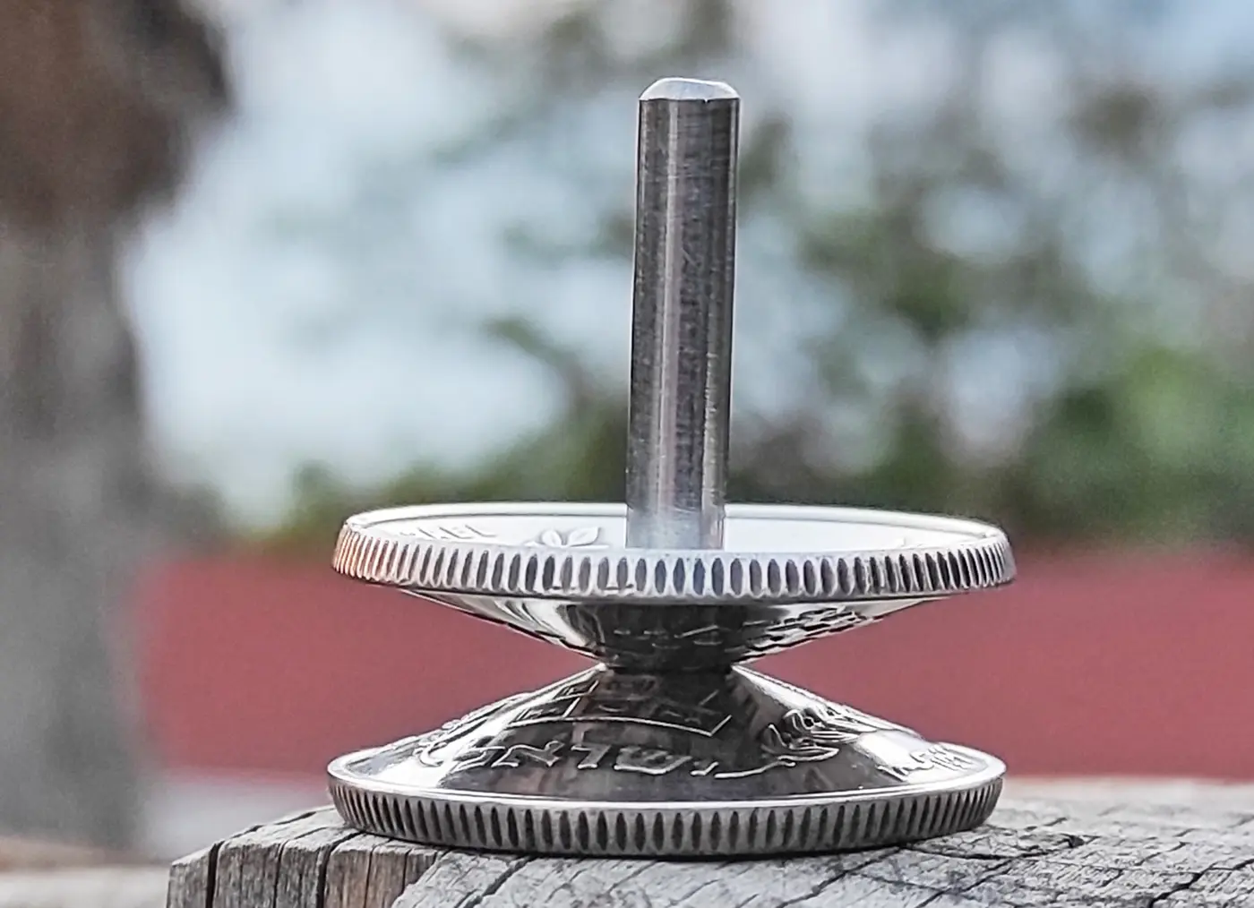 לסביבון מצורף מעמד - סטנד העשוי גם הוא ממטבע