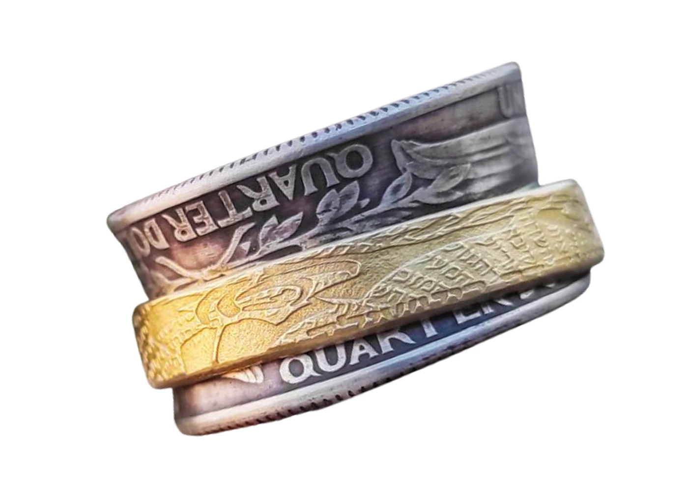 טבעת משולבת משני מטבעות quarter ארה"ב ומטבע ישראלי