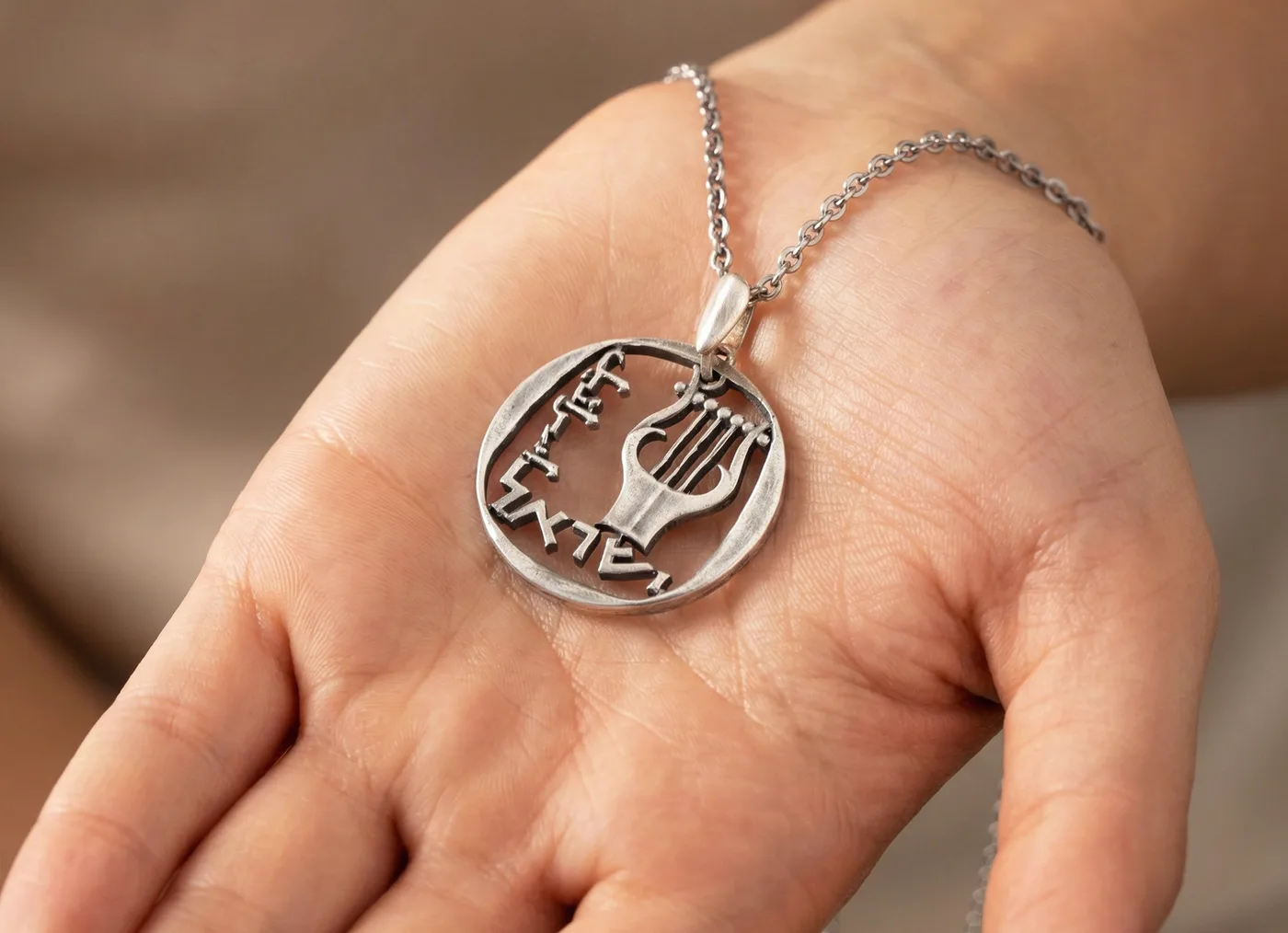 תליון כינור דוד בעבודת יד - עשוי ממטבע 25 אגורות, שנות ה 70