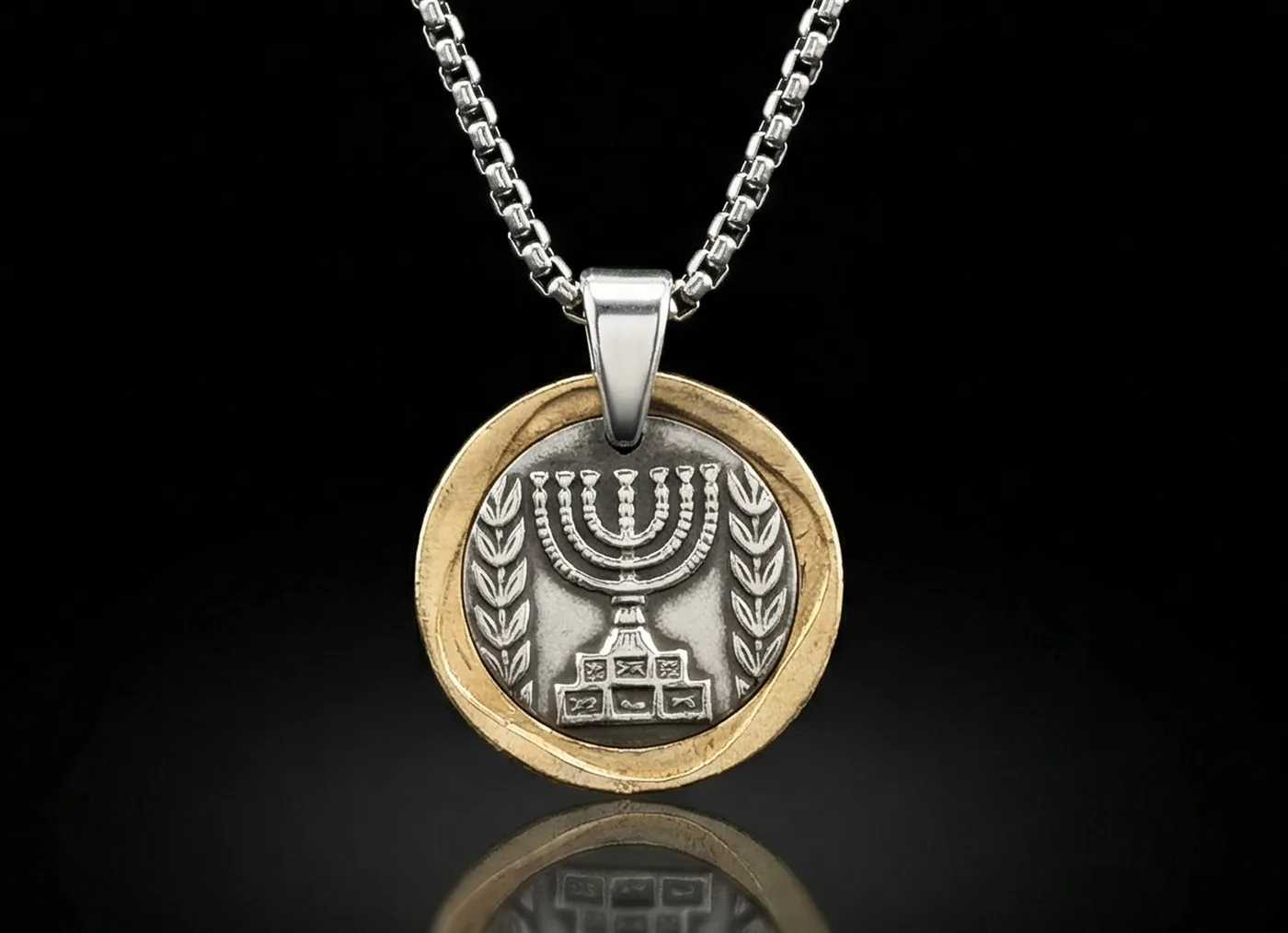 תליון בעבודת יד, עשוי ממטבע 1 לירה מנורה, שנות ה 60